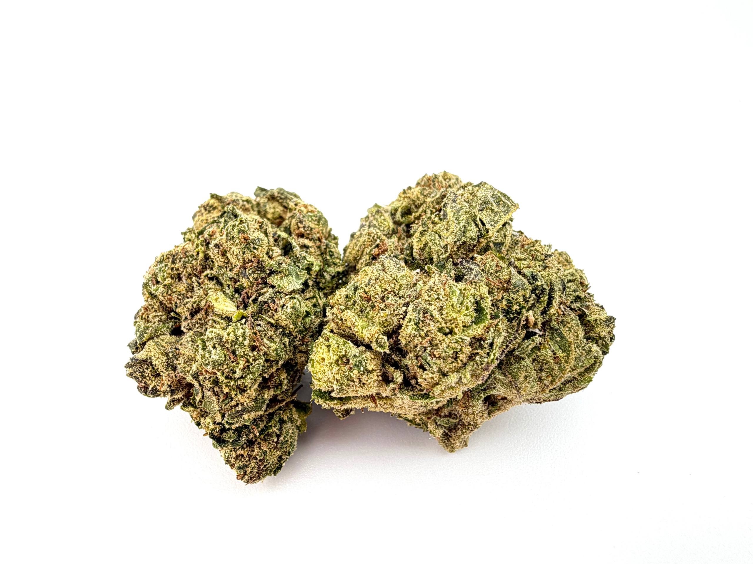 Colonel Crunch is a hybrid weed strain made from a genetic cross between Scoops and Strawberries and Cream. This strain is 50% sativa and 50% indica. Colonel Crunch is known to have a THC content of around 22%, making this strain a versatile choice suitable for both beginners and experienced cannabis consumers. Bred by Exotic Genetix,, Colonel Crunch features myrcene as the dominant terpene.